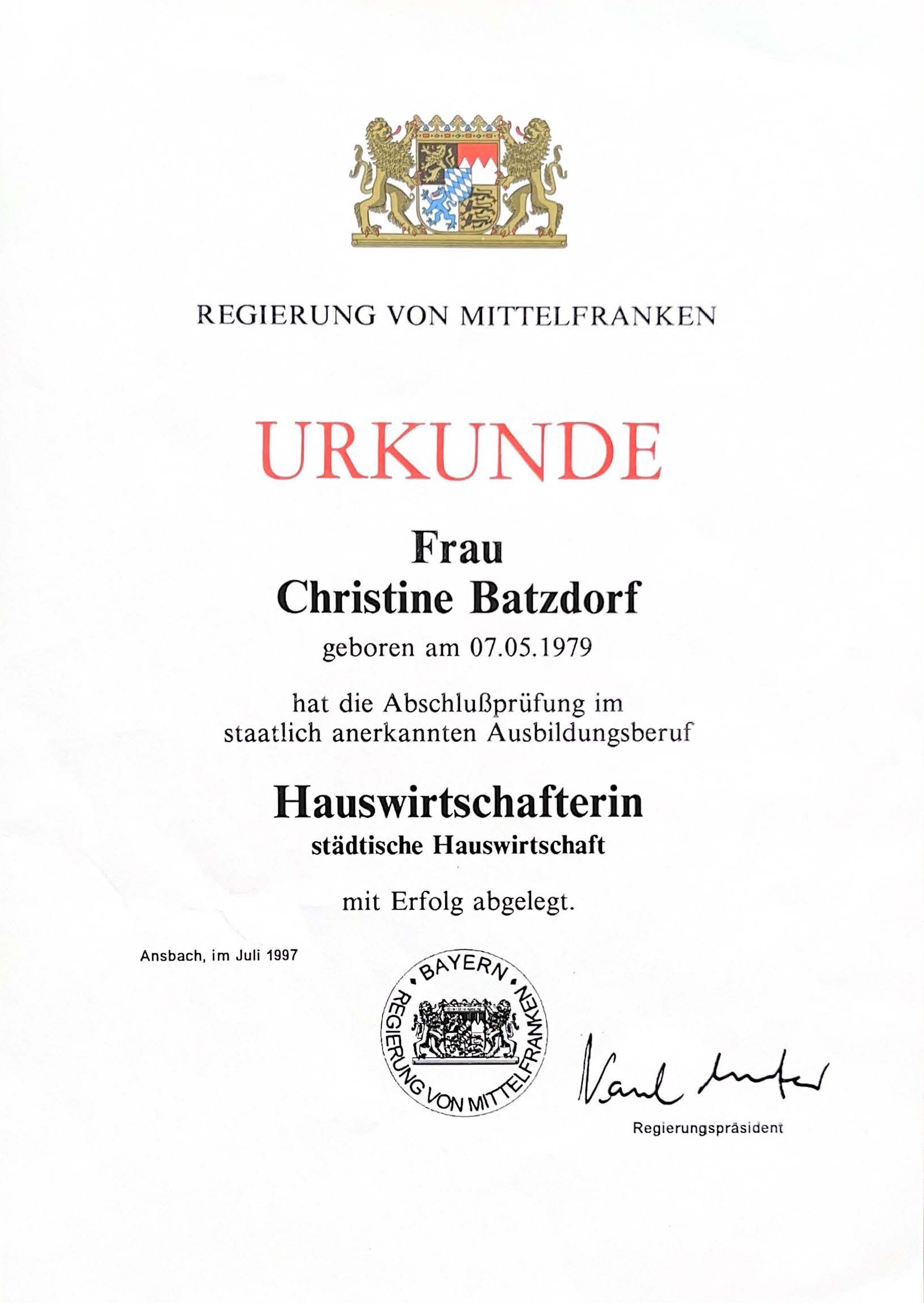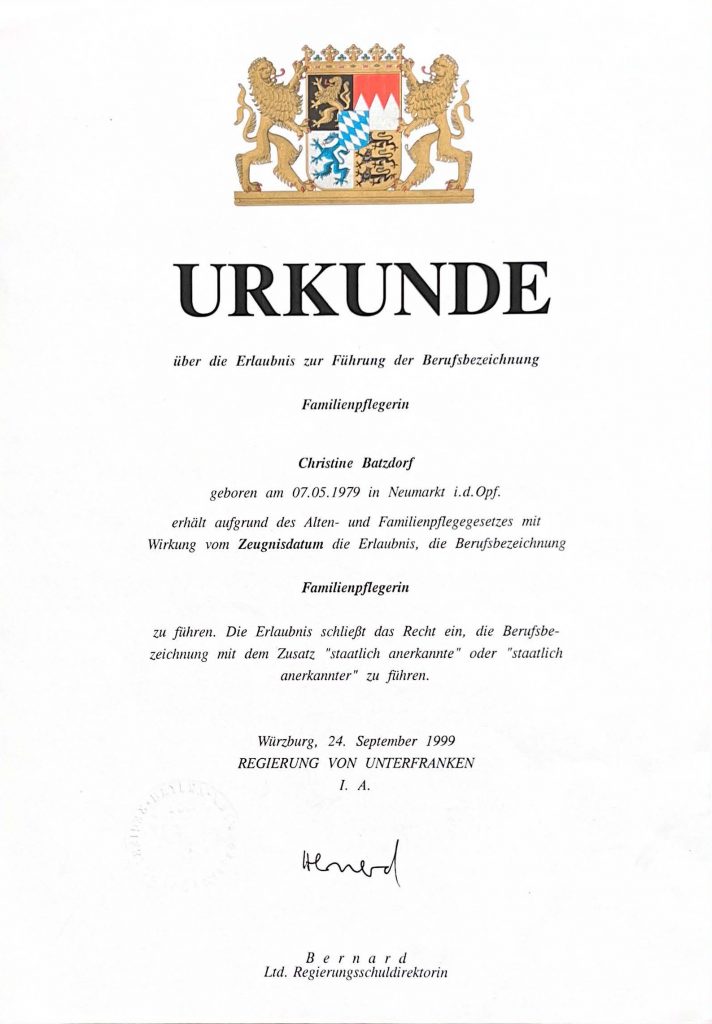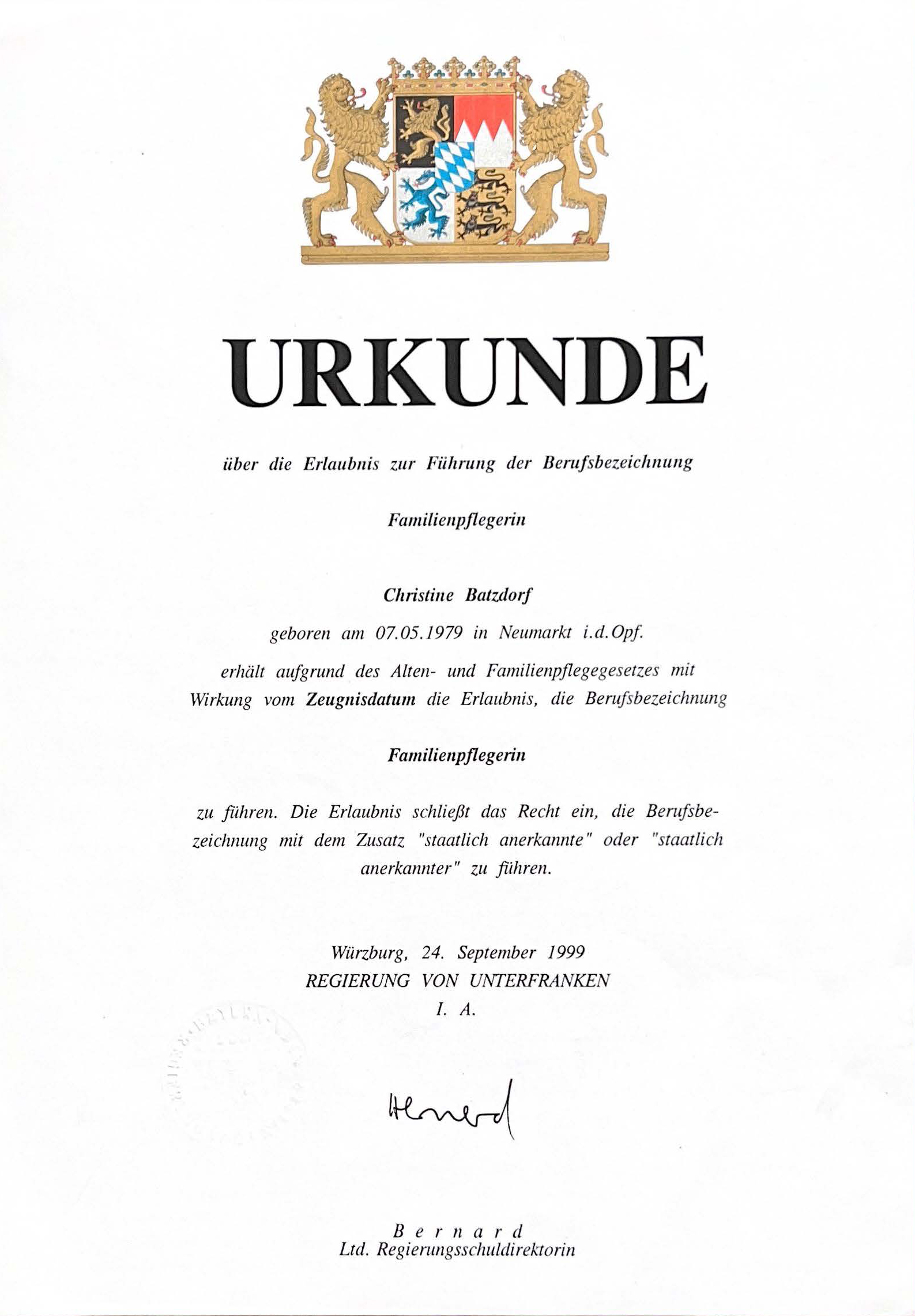 Sie können mich telefonisch unter 0171 1751504 oder per Email: Christine.batzdorf@gmail.com erreichen. Ich freue mich auf Ihren Anruf! Christine K. Batzdorf Wohnhaft in Neumarkt i.d.OPf.Selbstständige, staatlich geprüfte Familienpflegerin und Hauswirtschafterin mit 20 jähriger Berufserfahrung. Brunnenstraße 892318 Neumarkt i.d.OPf. 0171 1751504 christine.batzdorf@gmail.com Kontakt Impressum Datenschutz